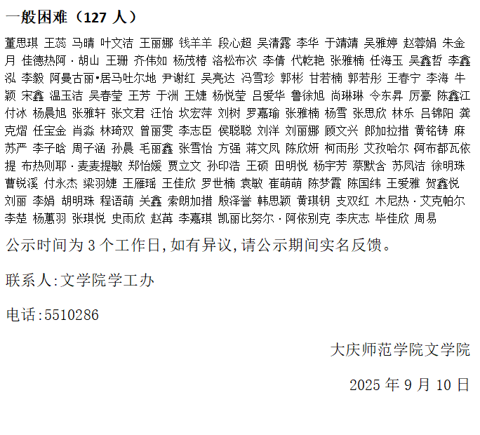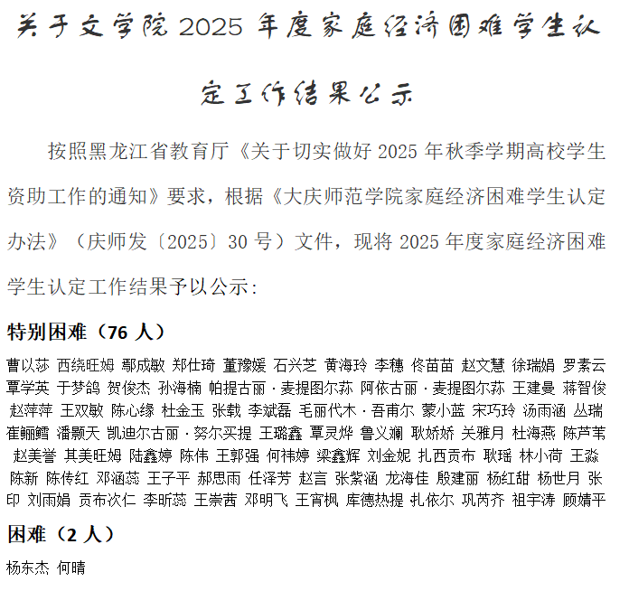 关于JINNIAN金年会2025年度家庭经济困难学生认定工作结果公示